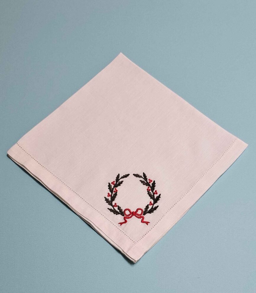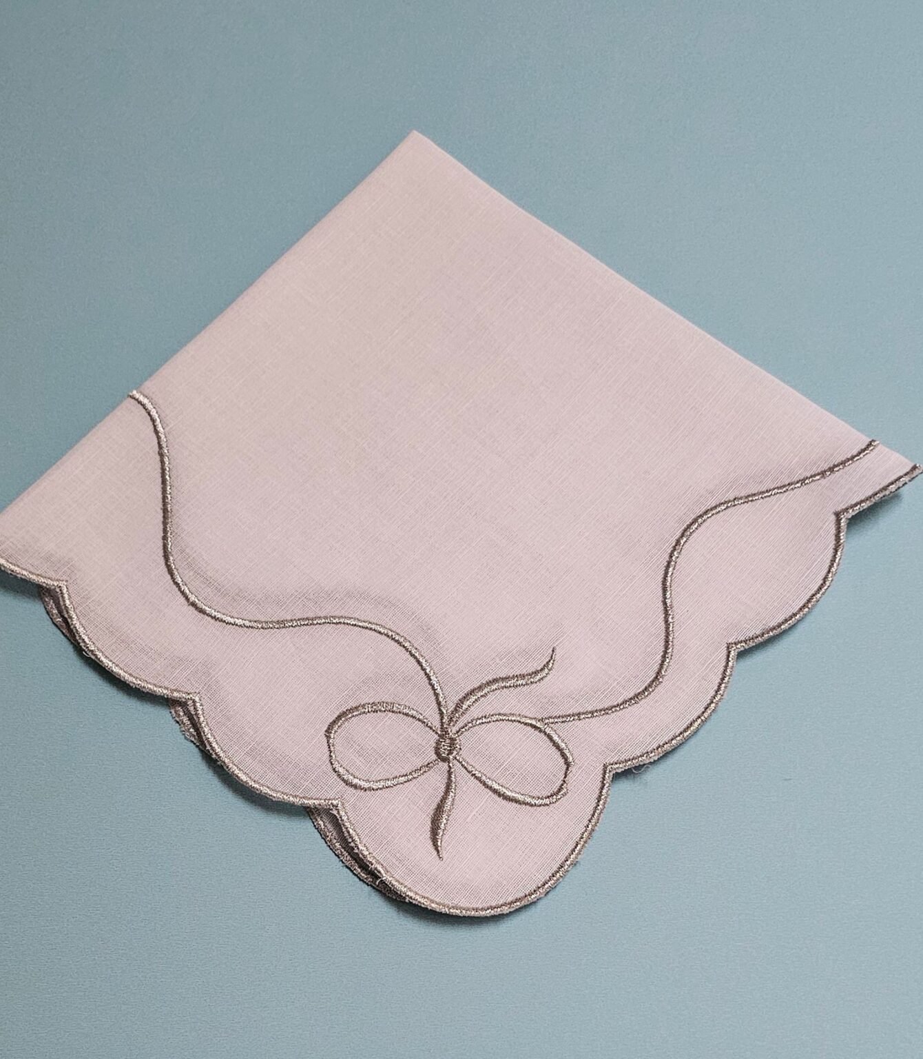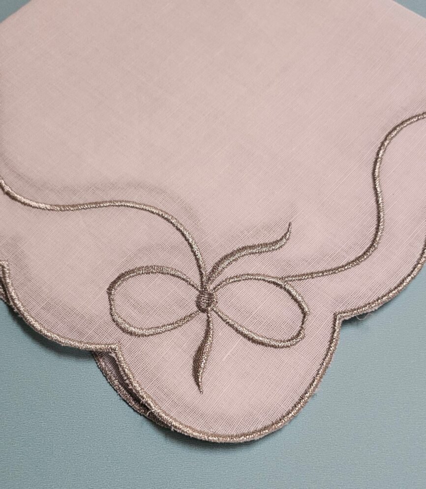 A delicate linen collection featuring soft ivory embroidery that evokes blooming meadows. Elegant and minimal.